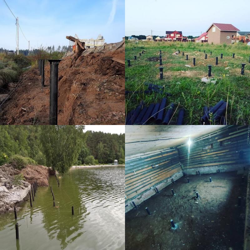 Отсутствие ландшафтных работ: Установка винтовых свай не требует земляных работ и не вмешивается в ландшафт участка. Этот тип основания можно установить практически на любом грунте (кроме скального) и в любом месте, включая водные поверхности.